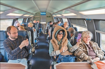 乘客在匈塞铁路高铁上拍照。刘雨欣 摄 10月,塞尔维亚的秋意正浓。首都贝尔格莱德中央火车站,一列崭新的高铁停在站台旁。电子屏幕显示,该航站楼是边境小镇苏博蒂察。这是匈塞铁路塞尔维亚段全面开通以来首列旅客列车。当地人登上车厢,体验新旅程,感受火车的“中国速度”。连接贝尔格莱德至匈牙利首都布达佩斯的匈塞铁路全长341.7公里,其中塞尔维亚段长183.1公里,设计最高时速200公里/小时。这是中国与中东欧国家的重大合作项目。该项目的大部分项目由中国进出口银行提供融资。中铁国际奥纳尔有限公司牵头与中国交通建设有限公司组建一家中国合资企业,负责建设。中午12点,列车正式出发。短暂提速后,车厢上的电子显示屏提示列车开始以每小时200公里的最高速度行驶。不少乘客纷纷拿出手机,在电子显示屏前与朋友合影留念。乘客德拉甘告诉记者:“这条铁路高效地连接了塞尔维亚的各个城市,是我国现代化的重要标志。塞尔维亚拥有这样的高铁,证明了这个国家正在领先、正在发展。”另一位乘客亚历山大告诉记者:“高铁列车与以前的老式列车完全不同。车厢很稳定,咖啡杯放在小桌子上也不会晃动。速度快得令人难以置信,但车内却很安静。我相信不久前,塞尔维亚总统武契奇在苏博蒂察亲自体验了试行列车。他说,以前从贝尔格莱德到苏博蒂察的列车需要5个小时左右,而这列列车只需1个小时就到了。他感慨道:“如果没有中国朋友,我们就不会取得如此伟大的成就。”匈塞铁路塞尔维亚段采用了动车组。 匈塞铁路采用中国铁路自主研发的控制系统,引进中国国产的通信信号、电力电气、钢轨、道岔、钢结构桥梁等设备,适配匈塞铁路高速动车组。作为首条进入欧洲的中国高铁,匈塞铁路成为中国技术装备首个通过欧盟铁路互通技术规范认证的项目。 2022年3月近日,匈塞铁路塞尔维亚贝尔格莱德至诺维萨德(贝诺段)段开工建设,开启巴尔干地区高铁新时代。贝诺段开通后,两个区域之间的运行时间从90多分钟缩短到30分钟。平均每天开行旅客列车62列。截至目前,已发送旅客超过1260万人次,也受到塞尔维亚政府和人民的接待。塞尔维亚铁道总局代理局长亚历山大·阿达莫维奇表示,匈塞铁路高标准建设完成,给沿线居民生活带来了舒适,持续改变国家发展面貌。 13时22分,列车抵达苏博蒂察车站,乘客陆续下车。从苏博蒂察车站的距离看,铁轨继续到达塞尔维亚和匈牙利边境。匈牙利人匈牙利-塞尔维亚铁路部分正在建设中。匈牙利建设和交通部副部长切普雷盖·南多表示,匈塞铁路匈牙利段将于明年春季开工建设。届时,铁路将充分发挥潜力,为匈塞两国及地区带来更多经济发展机遇。