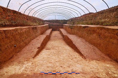 TG20南段全景图——硬面2(从北到南) 图片由中国社会科学院考古研究所提供。 12月22日,记者从阿房宫、上林苑考古队获悉,2025年阿房宫遗址考古取得重要成果,考古发掘确定了发掘区阿房宫台地南缘的准确位置,确认了阿房宫台地建在台地连续淤泥上,并首次清晰地展示了淤泥的主要过程。基础。阿房宫遗址位于陕西省西安市西咸新区沣东新城。是秦始皇三十五年(公元前212年)在渭南上林园修建的秦帝国宫殿。据记载,随着秦二世的死,阿房宫的修建被迫结束。确定精确位置位于阿房宫平台南缘。 1994年,西安市文物局组织团队对阿房宫遗址进行首次考古勘探。 2002年至2004年,中国社会科学院考古研究所与西安市文物保护考古研究所联合研制的阿房宫考古队确定,阿房宫为长方形夯土台地,东西走向的长方形夯土台地,北长1260米,北长1260米。面积约54.1万平方米。经确定,阿房宫并未建成,也没有被烧毁。 2015年至2017年,由中国社会科学院考古研究所和西安市文物保护考古研究所联合组建的阿房宫和上林苑考古队,在考古发掘过程中逐步发现。对阿房宫遗址的考古勘探表明,阿房宫下面有大量厚厚的水沉积物。在阿房宫修建之前,这里长期积水的“洼地”。为核实和确定台基夯土下淤泥的分布、年代和性质,了解阿房宫遗址选址的相关原因,探究阿房宫台基的斜坡过程,2025年阿房宫和尚礼园考古队选点在阿房台中部阿房宫东侧进行考古发掘。鞠家庄村,发掘面积约1000平方米。 “通过这次发掘,我们已经确定了发掘地点阿房宫平台南缘的具体位置。”何家欢 中国社会科学院考古研究所助理研究员告诉记者,2002年开始的阿房宫考古勘探过程中,台基东侧被村落占据,无法充分勘探,因此台基东侧南侧多呈现出南侧,台基南侧多恢复到西侧。今年发掘确定的台基南缘位于先前修复的南缘以北约32米处,距台基北缘约407米。 “根据两次考古发现,阿房宫平台的南缘并不存在一条直线,应根据需要进行调整和修改。” Epang Palac 平台建在连续的淤泥上。 “我们在发掘过程中发现,发掘区阿房宫平台下方分布着连续的黑色淤泥,而阿房宫下方则分布着连续的黑色淤泥。e为黄色生土和淤泥。仅发现了少量新石器时代陶器残片,表明在阿房宫修建之前,远古时期该地区已有人类活动。 ”贾环从评判底部指着评判区域表示,酌情斟酌。淤泥分为南高北低的斜坡状,夯土下方的淤泥厚约0.5米至0.6米。从开挖情况来看,淤泥底部北低南高,夯土在淤泥上方逐层夯筑。考古队书本次发掘确定,阿房宫之前建有一座巨大的“水池”或“湖”,而阿房宫的高夯土台基是在湖底的淤泥上筑成的,据初步勘探,阿房宫台地西、北、南大部分地区一般没有淤泥。东侧因受现代建筑影响无法探索,根据现有了解,距阿房宫平台不远处也没有淤泥。大面积淤泥的分布表明该地区曾经是一个不同深度的湿地或湖泊。从发掘情况来看,阿房宫平台下不同地点残留淤泥的厚度大体相同,这表明阿房宫修建前,“池水”排空后,应对淤泥“底”进行“等厚”处理。 “池子”中心较深,淤泥较厚。较厚的地方多疏浚,靠近池边较薄的地方则少疏浚,形成一个由外向内逐渐加深的“基坑”平台。靠近边缘较浅,靠近中心较深。上面夯土的厚度后期淤泥明显中部较厚,边缘稍薄。阿房宫平台夯基的主要过程首次被清晰揭示。 “1994年、2002年、2004年两次对阿房宫的考古勘探中,在阿房宫的夯土台基上发现了多层‘路土’,确定是阿房宫修建时从南向北运土时,人们踩踏、碾压车辆形成的。”中国社会科学院考古研究所研究员刘锐介绍,今年发掘的两层硬地表质地坚硬,层状节理清晰。下部坚硬地表发现数条东南向西北向的车辙,残存一些捣打施工时的工具痕迹。这进一步证实了Epang Pa的建设是分阶段的认识。花边平台基础,为研究阿房宫的建造提供了新的资料。通过发掘,考古队确定下层坚硬地表为边界,其上下夯土有明显的东西走向的土色边界。另外,在同一夯层内,东西两侧土色和夯巢分布差异明显,并有南北向的林牙,说明“线”的东西两侧必定有两个“施工队”,从东西两侧向相反的方向在不同的“线”上不同的地色上施工,从而造成不同的地色。南北线上的夯土,留下了秦国大型国家工程建设和管理的罕见重要标志。刘锐进一步介绍,本次发掘首次清晰揭示了夯基的主要过程阿芳宫:排空工地“水池”的水;清理“水池”底部淤泥,按照设计要求形成不同深度的沟基础,保持“水池”底部淤泥厚度相近;阿房宫地基的坡道是分块进行的,坡道发掘现场的顺序是先向南(外),再向北(内);基础夯实到一定高度后,施工人员和车辆将土由南向北运至基础平台北侧,并进行踩踏、碾压,形成下部硬面。平台基础的北部部分在坚硬表面北端以北倾斜,然后平台基础的南部部分逐渐向南“后退”。陆地横冲直撞的顺序是从北到南;团队建设阿房宫任务明确,分工明确,分区工作。 (光明日报记者 李杰 张哲浩)